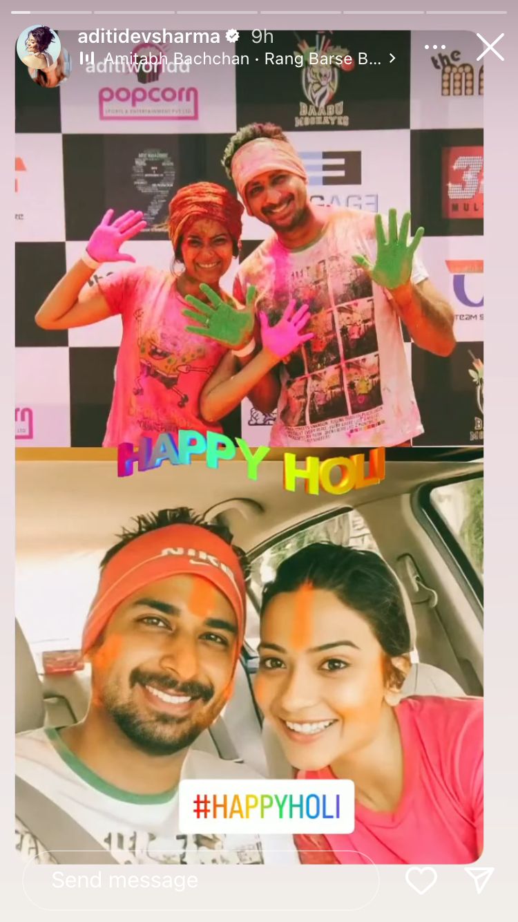 Actress Aditi Dev Sharma who has marked her name in the Punjabi industry with films like Ikko Mikke, Angrej, and Golak Bugni Bank Te Batua has enjoyed Holi as her face is covered with colours. Aditi will soon be witnessed on big screens in the film Es Jahano Door Kite Chal Jindiye.